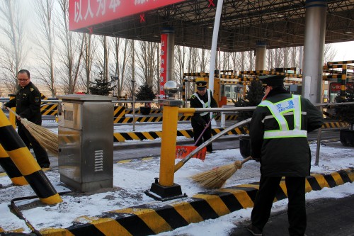 宣化東收費(fèi)站做好站區(qū)除雪保暢及車輛交通管制工作