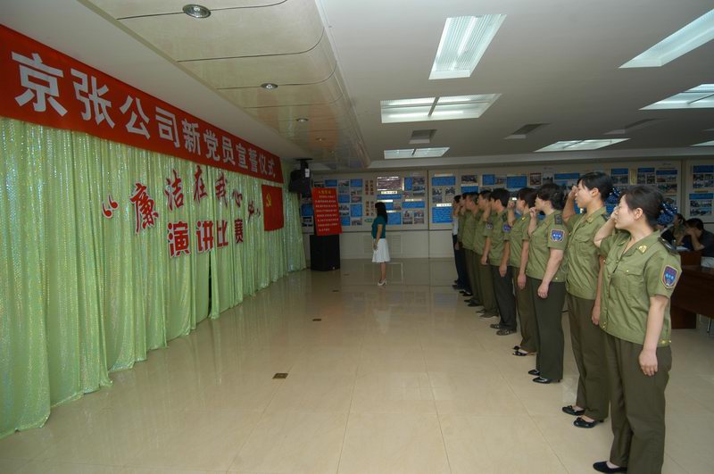 面對黨旗,舉起右手,緊握拳頭,莊嚴宣誓:“我志愿加入中國共產(chǎn)黨,擁護黨的綱領(lǐng),遵守黨的章程,履行黨的義務(wù),執(zhí)行黨的決定……”。在紀(jì)念建黨88周年之際,公司黨委在四樓會議室為今年新加入中國共產(chǎn)黨的武志麗等10名同志舉行了入黨宣誓儀式。公司黨辦室主任石林叢同志主持儀式并領(lǐng)誓。