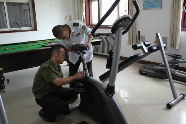 6月17日,;劬、李淵兩名同志發(fā)現(xiàn)健身房部分健身設(shè)施出現(xiàn)螺絲松動現(xiàn)象,便自發(fā)找來維修工具對設(shè)施進(jìn)行維修保養(yǎng)。兩人邊摸索邊修理,將因螺絲松動而不能使用的健身自行車重新修好,隨后又對其他健身器材進(jìn)行加固保養(yǎng),保證了設(shè)施正常使用。
